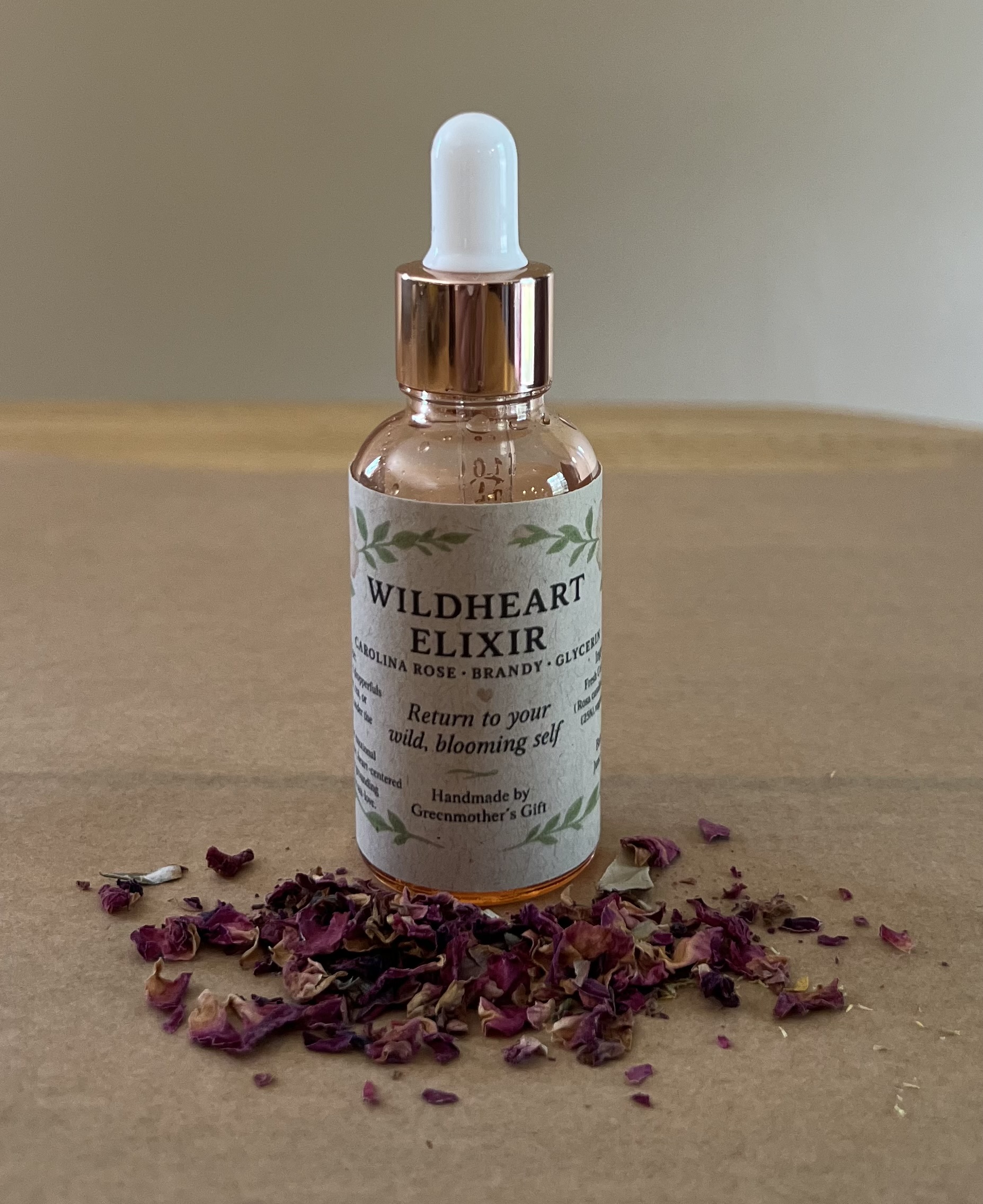 Handpicked Carolina rose infused in brandy and glycerin — an elixir to nourish the heart and awaken your inner wild joy!